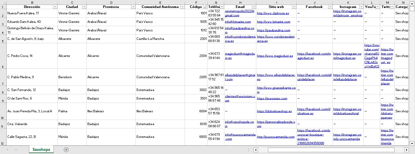 ¿Buscas una lista profesional para contactar con Sexshops de España? Te ofrezco una base de datos completa de sexshops en España, diseñada para ahorrarte horas de búsqueda y permitirte comunicarte de forma eficaz.