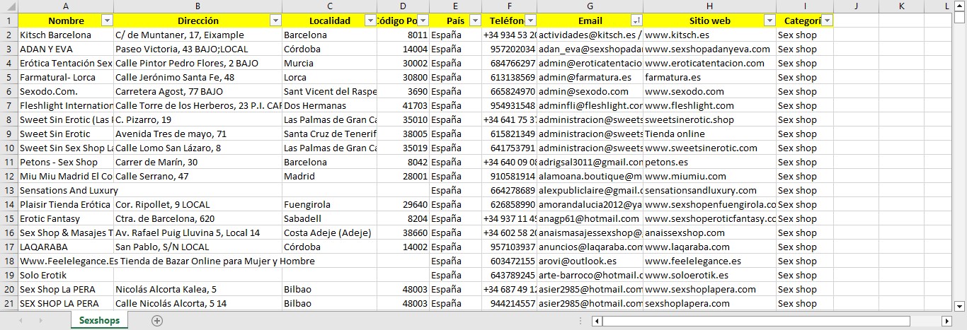Base de datos de Sexshops de España 2026