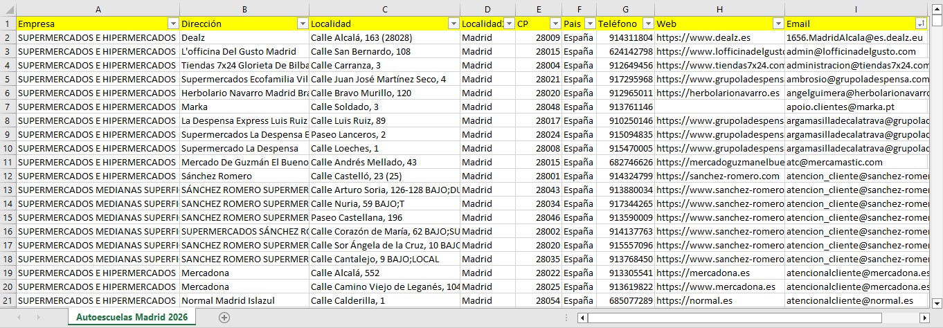 ¿Buscas una lista profesional para contactar con Supermercados en Madrid, España? Te ofrezco una base de datos completa de Supermercados en Madrid, diseñada para ahorrarte horas de búsqueda y permitirte comunicarte de forma eficaz.